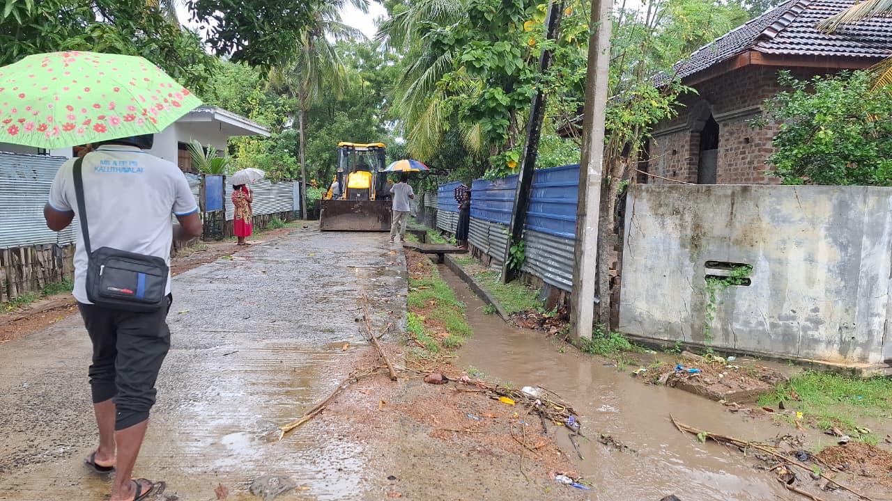 குறிப்பாக களுவாஞ்சிகுடி, மகிழூர், எருவில் குருமன்வெளி, துறைநீலாவனை போன்ற கிராமங்களில் பெருமளவில் மக்கள் குடியிருப்புக்கள் வெள்ள நீர் நிரம்பி காணப்படுகின்றது. குறித்த நீரை வெளியேற்றும் பணியில் மண்முனை தென் எருவில் பற்ற பிரசே சபையின் தவிசாளர் மே.வினோராஜ் தலைமையிலான உறுப்பினர்கள் உத்தியோகத்தர்கள், ஊழியர்கள் ஈடுபடுவதையும் அவதானிக்க முடிகின்றது.
