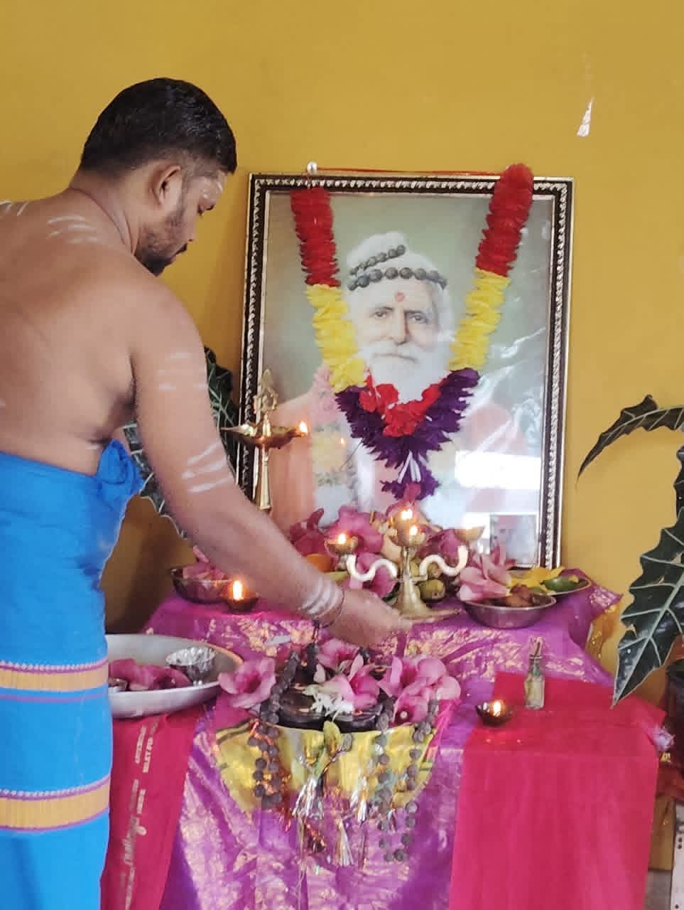 முதலில் விநாயகர் வழிபாடு பின்னர் குருபாத பூஜை மேற்கொள்ளப்பட்டு, புனித காணிக்கைகள் செலுத்தப்பட்டன.