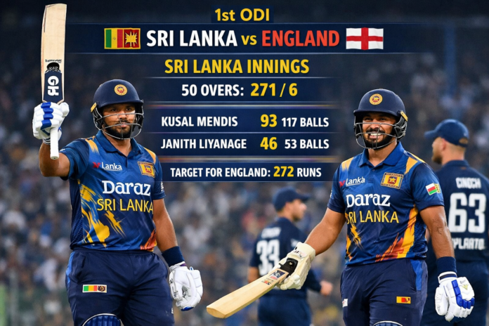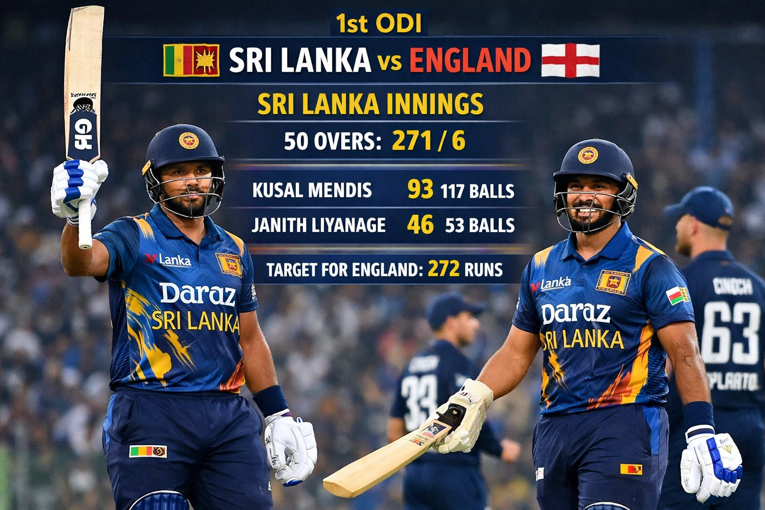 அதன்படி இலங்கை அணி நிர்ணயிக்கப்பட்ட 50 ஓவர்கள் நிறைவில் 6 விக்கெட்டுக்களை இழந்து 271 ஓட்டங்களை பெற்றது.