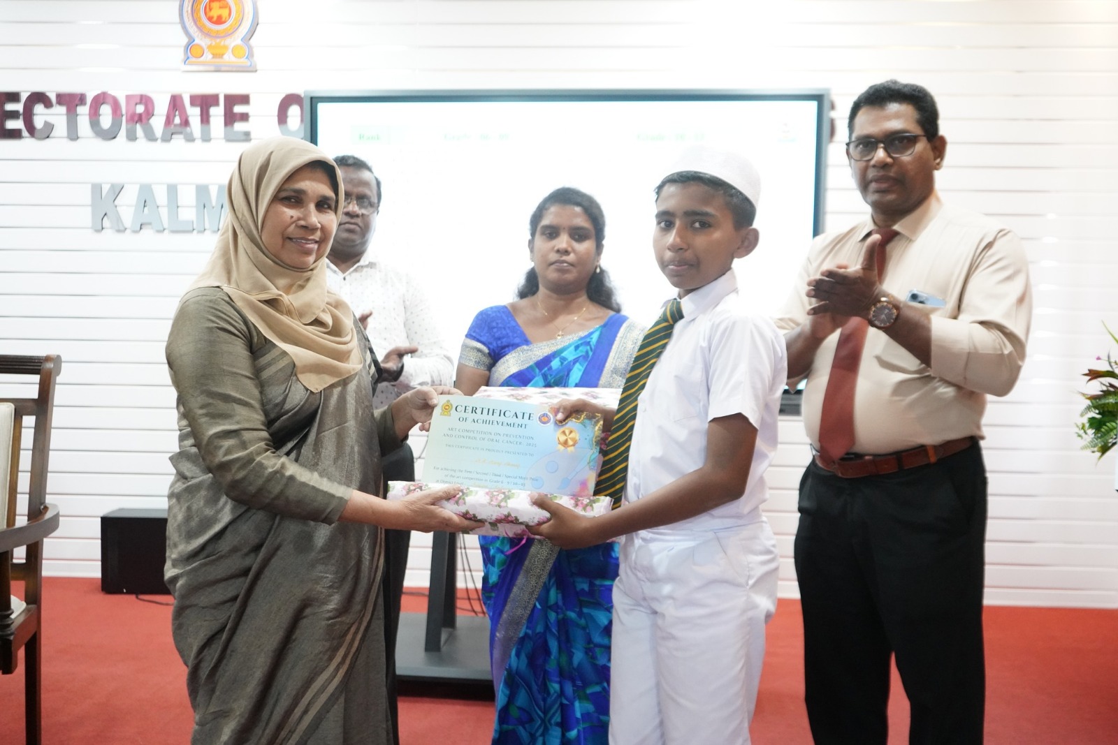 உலக தலை மற்றும் கழுத்து புற்றுநோய் தினத்தை முன்னிட்டு பொது மக்களிடையே விழிப்புணர்வை ஏற்படுத்தும் பொருட்டு, கல்முனை பிராந்திய வாய் சுகாதார பிரிவால் பாடசாலை மாணவர்களிடையே நடாத்தப்பட்ட சுவரொட்டிப் போட்டியின் வெற்றியாளர்களுக்குப் பரிசில்கள் உட்பட சான்றிதழ்களும் வழங்கப்பட்டன.