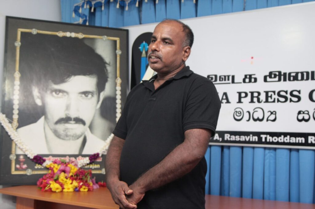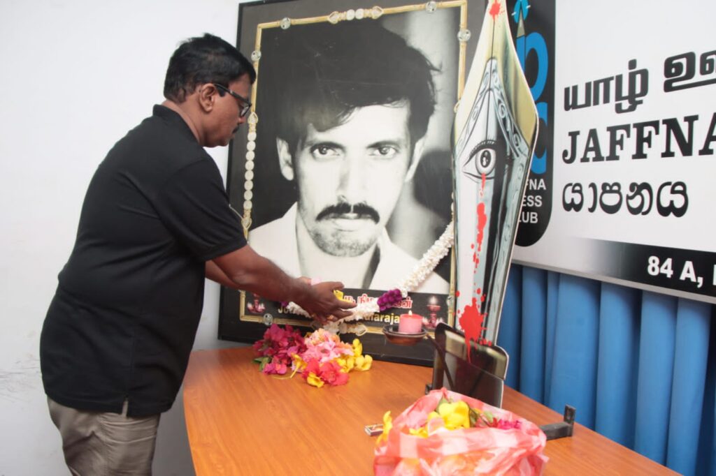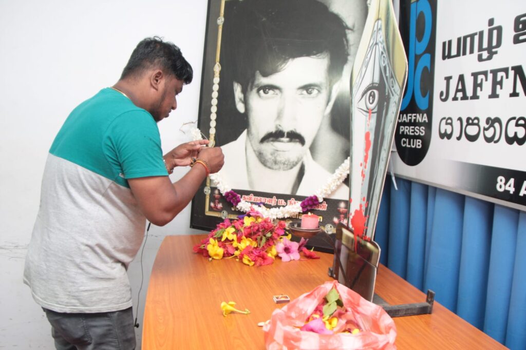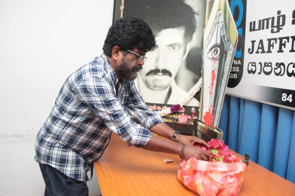 இதனைத் தொடர்ந்து, தென்னிலங்கை ஊடகவியலாளர் அஜித் பொது சுடரேற்றி அஞ்சலியை ஆரம்பித்து வைத்தார். பின்னர், யாழ். ஊடக அமையத்தைச் சேர்ந்த ஏனைய ஊடகவியலாளர்கள் மற்றும் சமூக செயற்பாட்டாளர்கள் மலரஞ்சலி செலுத்தினர்.