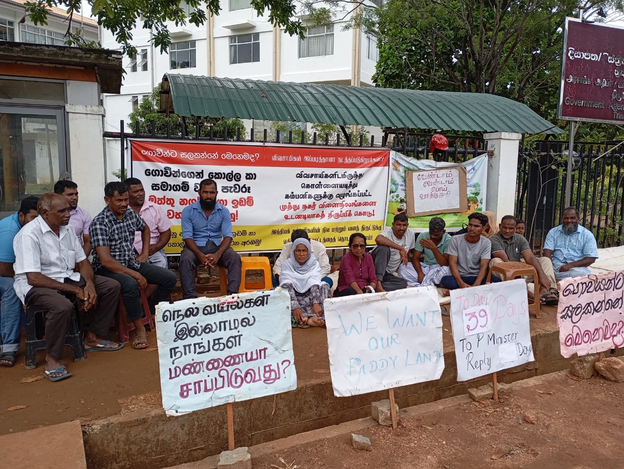 திருகோணமலை முத்து நகர் விவசாயிகள் இன்றுடன் (25) சனிக் கிழமை 39 ஆவது நாளாக தொடர் சத்தியாக் கிரகப் போராட்டத்தை திருமலை மாவட்ட செயலகம் முன்பாக நடாத்தி வருகின்றனர்.