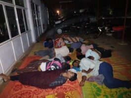 கொட்டும் மழையில் சத்தியாக்கிரக போராட்டத்தில் ஈடுபட்டுள்ள புல்மோட்டை கனிய மணல் கூட்டுத்தாபன ஊழியர்கள்